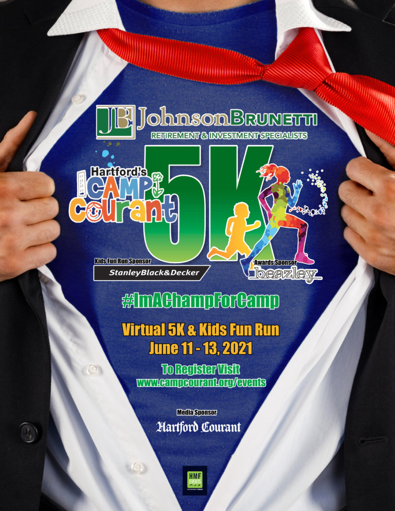 Tie up your laces and join the many ‘champs for camp’ this June with Camp Courant’s 4th Annual Johnson Brunetti 5k & Stanley Black & Decker Kids Fun Run! This annual family event will be virtual, and we invite participants to run or walk anywhere they choose in either the ½ mile, 1 mile, or 5k distance.